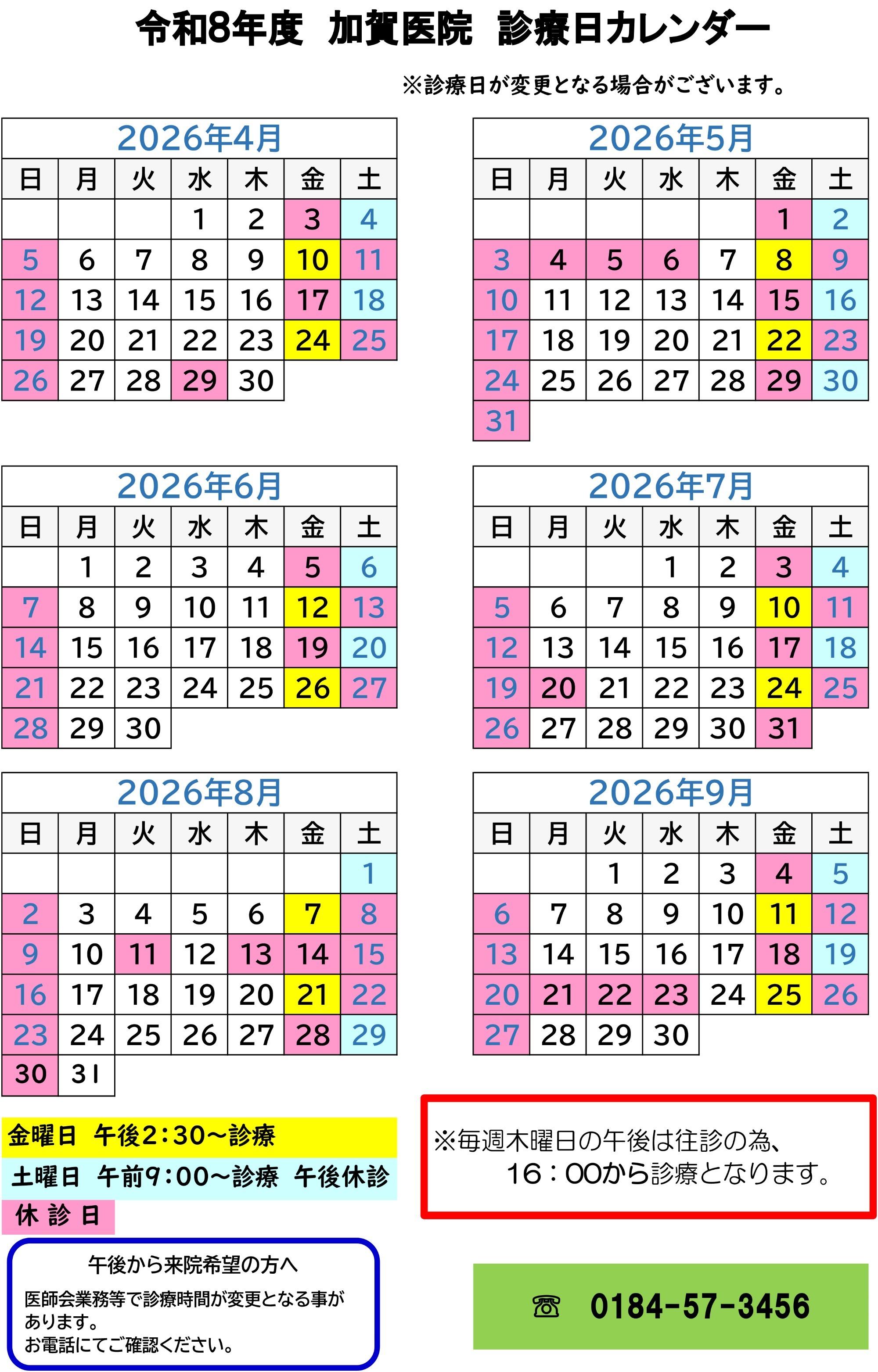 診療カレンダー